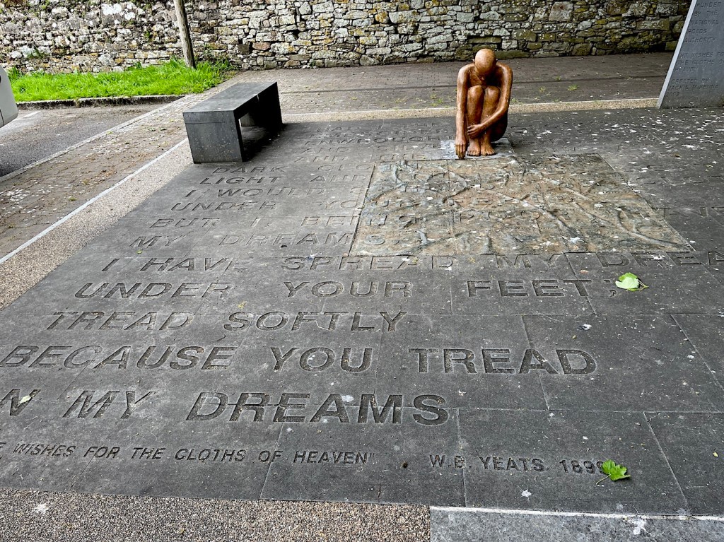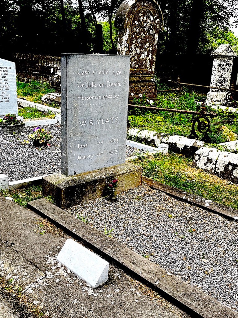 Saturday, May 27th, we left County Donegal and drove through the foothills of Benbulben Mountain, which is “Yeats Country”. Our first stop was the village of Drumcliffe to view the final resting place of poet W. B. Yeats.