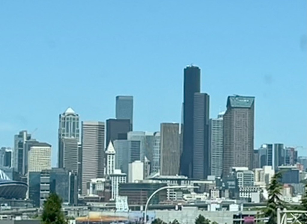 On Monday, June 12th, Maxi and her adventurers made it through Washington state.  To minimize traffic with the trailer holding Maxi, they skirted around Seattle, but Charlie caught this shot of the city: