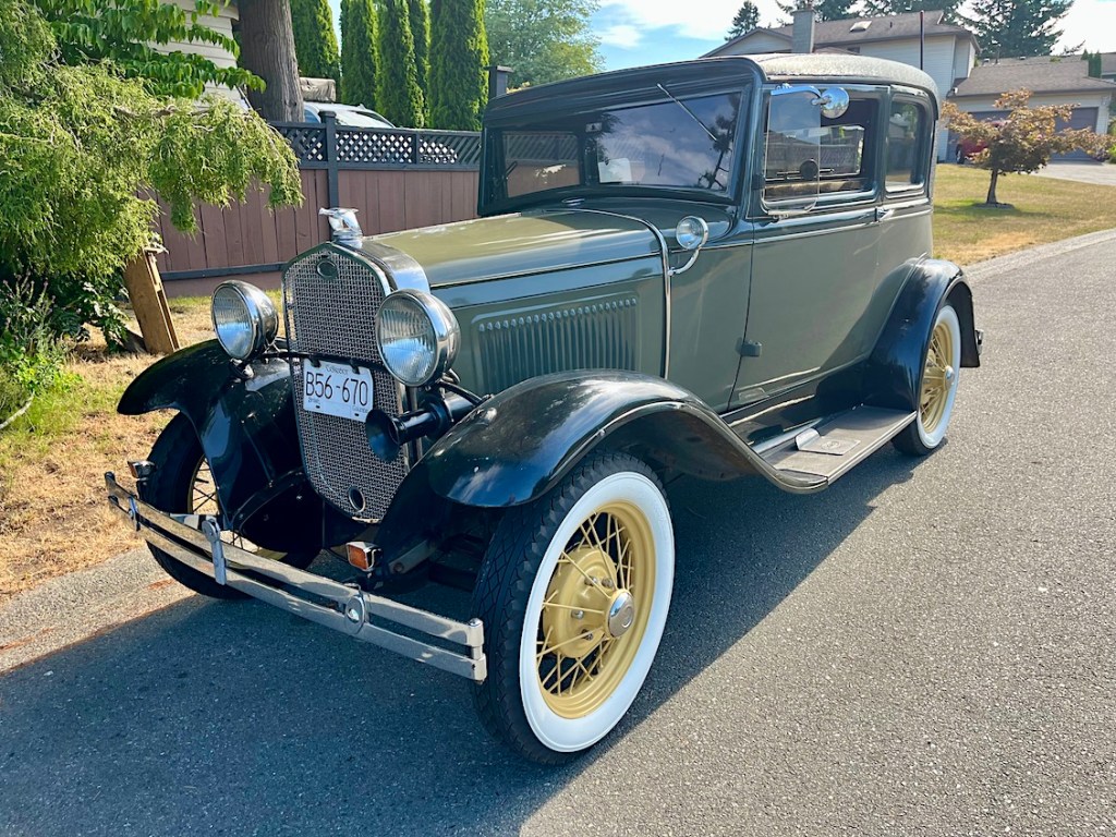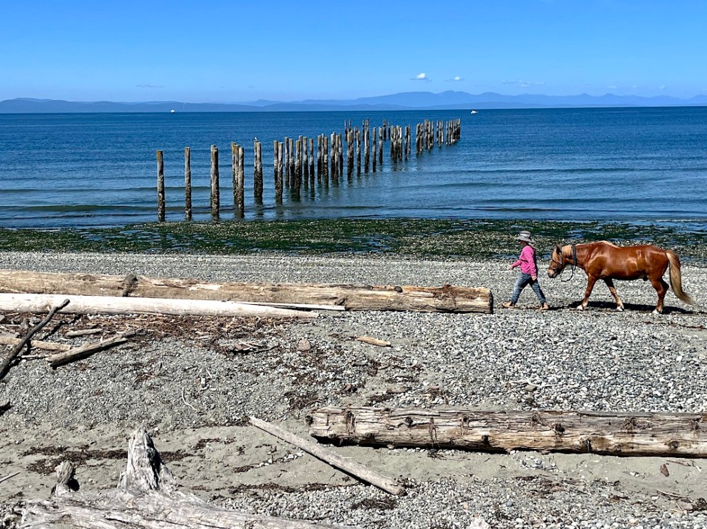 This is Bob’s Model A, and the only photo I received of Bob (checking his engine). The two cars crossed the border (at least three times today for Maxi) to visit Point Roberts, Washington. Wouldn’t it be nice to be able to walk your horse along the beach like this?