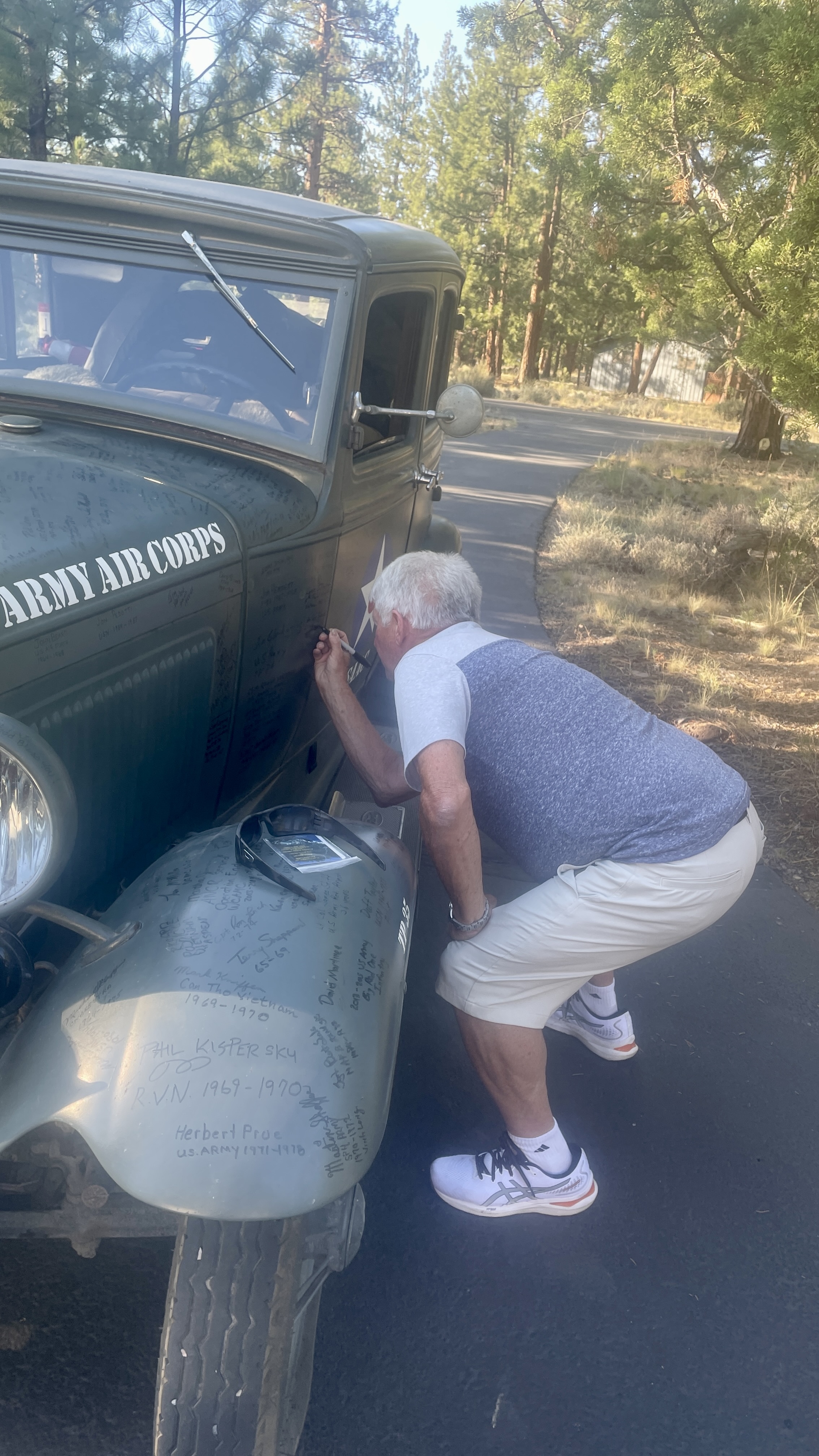 On July 19th the guys drove to Sisters, Oregon, where Charlie’s twin sisters live. Had a nice visit, dinner, and found a couple more veterans to sign Maxi.