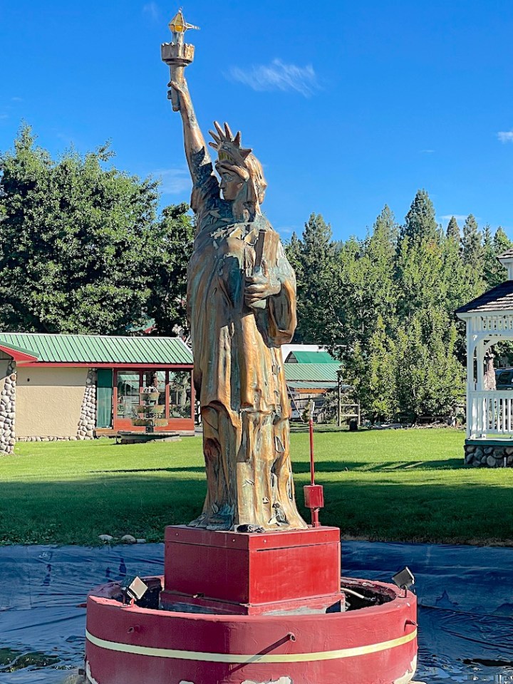 The first photo above (taken by Tim) shows most of our cars gathered at the “Eiffel Tower” in Plain, Washington. The owner had a car collection and an amazing metal shop, and he had actually built this replica himself. The next photos are just two of several of his statues –I think I got a photo of Winston Churchill and Lady Liberty.