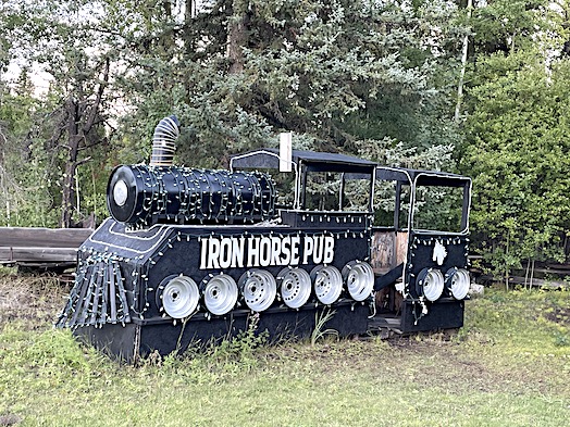 Ten of our group went to dinner in a nearby town. The cute (and yummy) restaurant is called the Iron Horse Pub. This is their “float” for an annual town parade. As you can see, it is outfitted with lights they use for the parade.